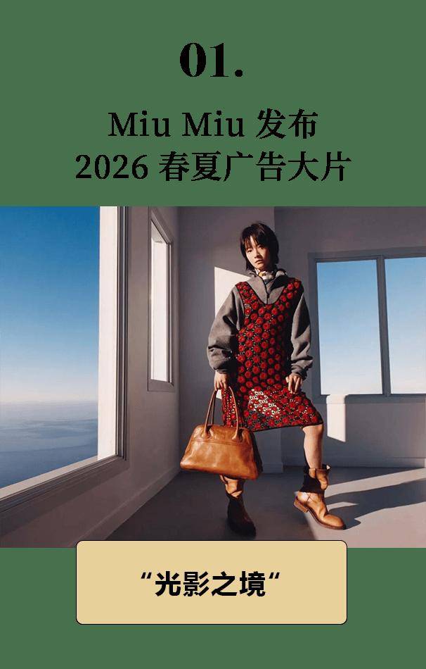 Miu Miu 2026 春夏广告大片汇聚跨领域群星:品牌大使李庚希、创作歌手兼模特 Sateen Besson、演员兼导演及编剧 Suzanne Lindon、创作歌手兼演员 Olivia Rodrigo,以及模特 Rachel Agbonze 和 Amelie Sante。镜头记录下她们从黎明到黄昏的姿态,光影也随之由清晰渐至朦胧。