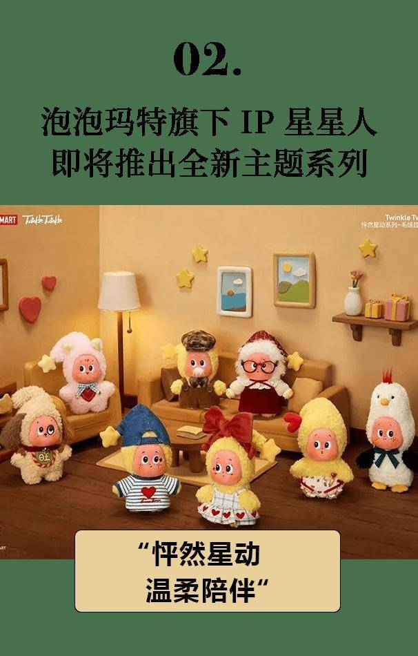 泡泡玛特旗下人气 Ip 星星人即将推出全新主题系列——怦然星动,一群来自遥远星系的星星人们观察着宇宙间千百种形态的爱,将收集到的关于爱的万千信号,编织成触手可及的温柔陪伴。