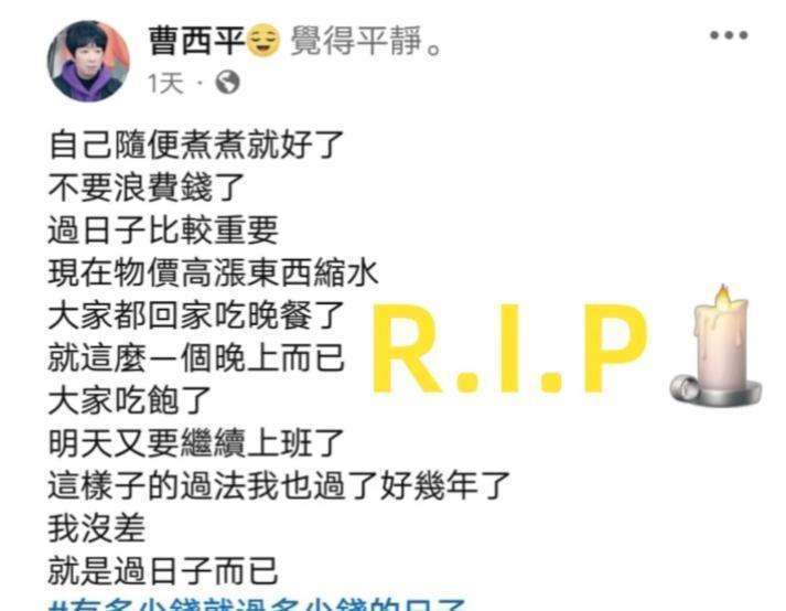 在他去世的前一天,台湾发生了地震。曹西平在网上发布了一句话:天灾人祸,谁也躲不过去。这句话没有被转发,媒体也没有报道。这句话就像他的为人一样,不去假装坚强,也不卖惨,只是冷静地面对现实。在如今的娱乐圈中,大家都在演绎着完美的人生,而他却选择活得不完美。韩国的直言不讳的艺人,往往最终会让人既感到同情又感到敬佩。而在台湾,曹西平去世后,没有人给予他任何奖项,也没有电视台为他做一场生平回顾的节目。这种状况本身就显得有些讽刺,那些真正敢说真话的人,往往都过得很平静,死得也很低调。他们从不需要别人的记忆,因为他们从来没有打算取悦任何人。