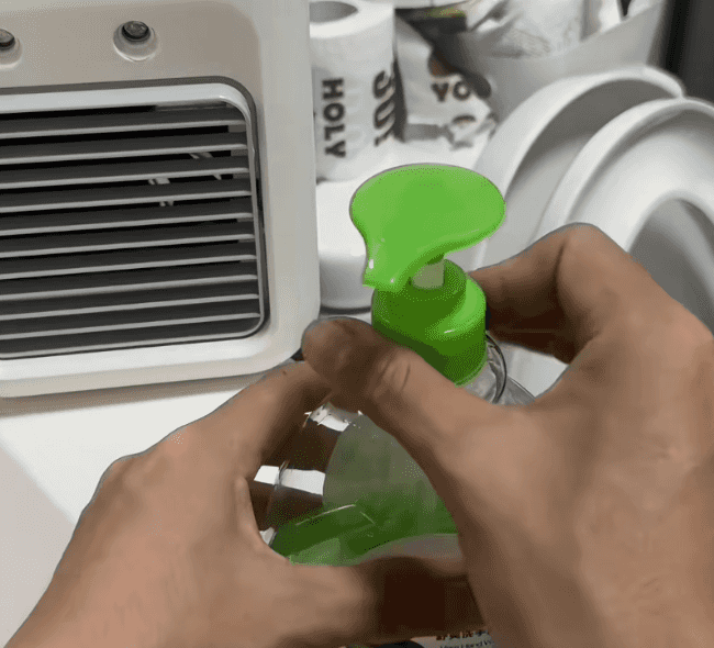 我们只需要将按压泵的泵头取下来,然后把管子里面的液体挤掉之后再重新装回去,然后拧紧,它就变成了锁定的状态,这样鞋带就不会弄撒。