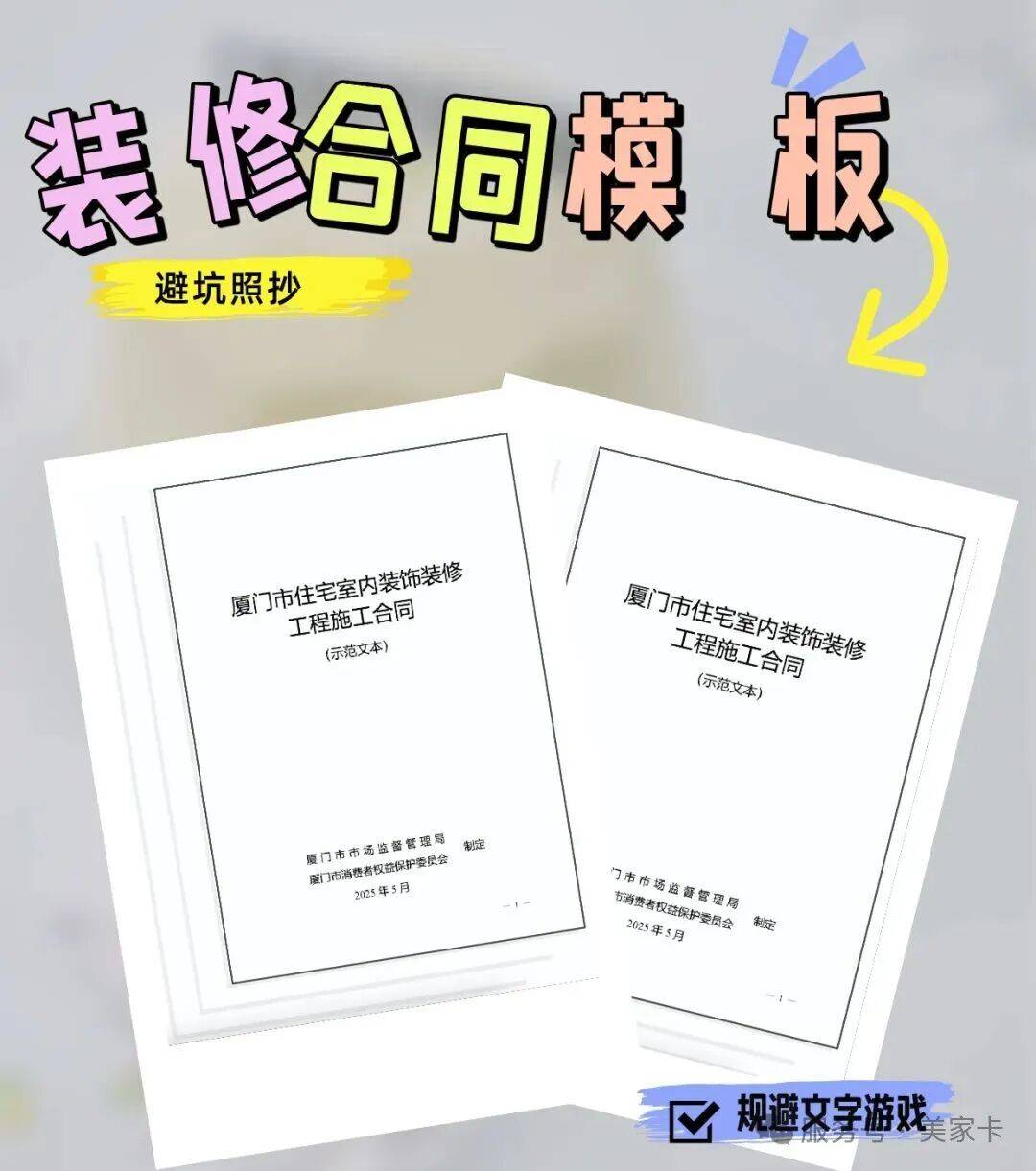 美家卡采用由厦门市市场监督管理局与市消保委联合拟定的标准合同范本;并提供专家团队免费审核合同与预算报价单,从源头帮业主规避消费陷阱。