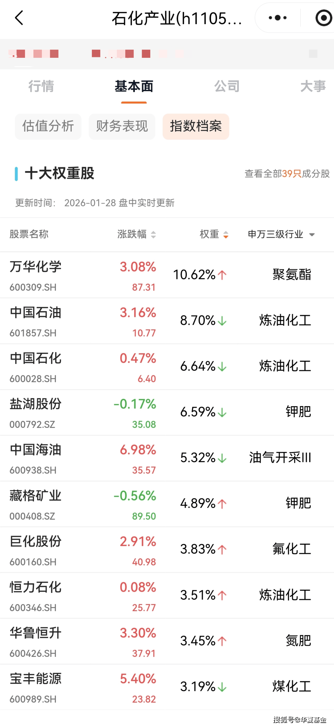 比如前十大重仓股中,既有像中国海油这样的“资源咖”,负责开采原油天然气,也有像万华化学这样的“超级化工厂”,把原油加工成我们生活中无处不在的塑料、化纤、涂料等高分子材料。所以,石化指数是一个“资源+高端制造”的混合体。它的行情,一半看国际油价的脸色,另一半则要看国内化工品的供需格局和产业竞争力。这就导致相比有色金属,石化在行情上的反应通常会“慢半拍”,要等到上游的有色金属涨一阵,经济复苏的信号明确传导到中下游的制造业需求时,它才会迎来自己的高光时刻!