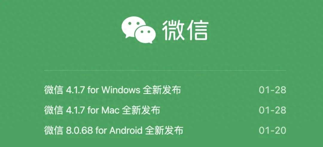根据微信官网页面显示,今天苹果同步发布了微信 4.1.7 for Windows 版和 Mac 版。