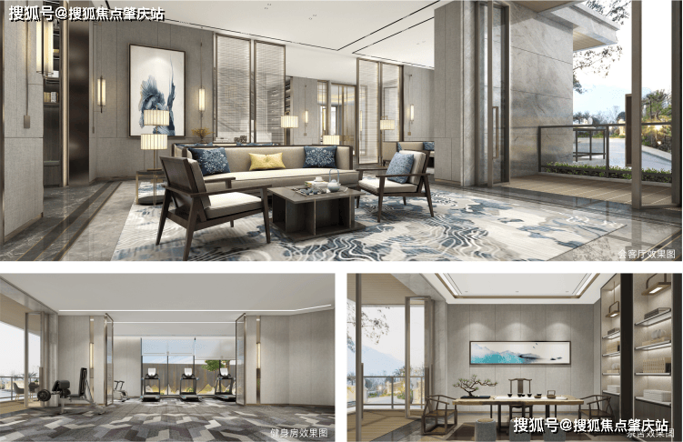 以“山”为门,提取新中式的优雅与从容,宽,则大大方方,高,则堂堂正正,是一种境界与智慧。用简单的线条和体块,展示正气大方的自我形象,构筑提振精神的强大中式气场。以100余米沉稳而有气势的临街展示界面,大门与景观墙一体化设计,传递“出可入世,入则隐心”的人文艺术气韵。