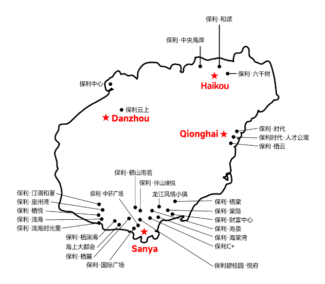 保利发展于 2012年10月进入海南市场,以南北海口三亚双城双核布局,十二年四城打造29个项目,以和保利筑海南为品牌愿景,自2014年起不断为海南树立多个标杆大盘。