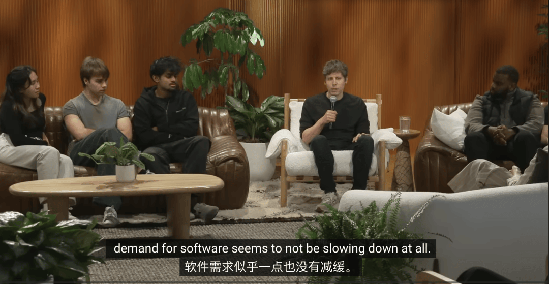 Sam Altman:我们还会继续招聘软件工程师。但这是第一次——我知道几乎所有公司、所有创业公司都在想同样的事——我们计划显著放慢人员扩张的速度,因为我们相信,用更少的人就能做更多的事情。
