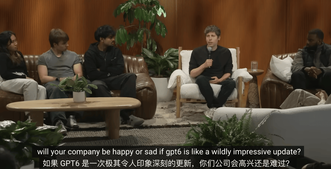 Sam 给出了一个自己的判断框架:如果 GPT-6 是一次极其惊人的升级,你的公司会感到高兴,还是难受?要构建那种“模型越强,你越开心”的产品。