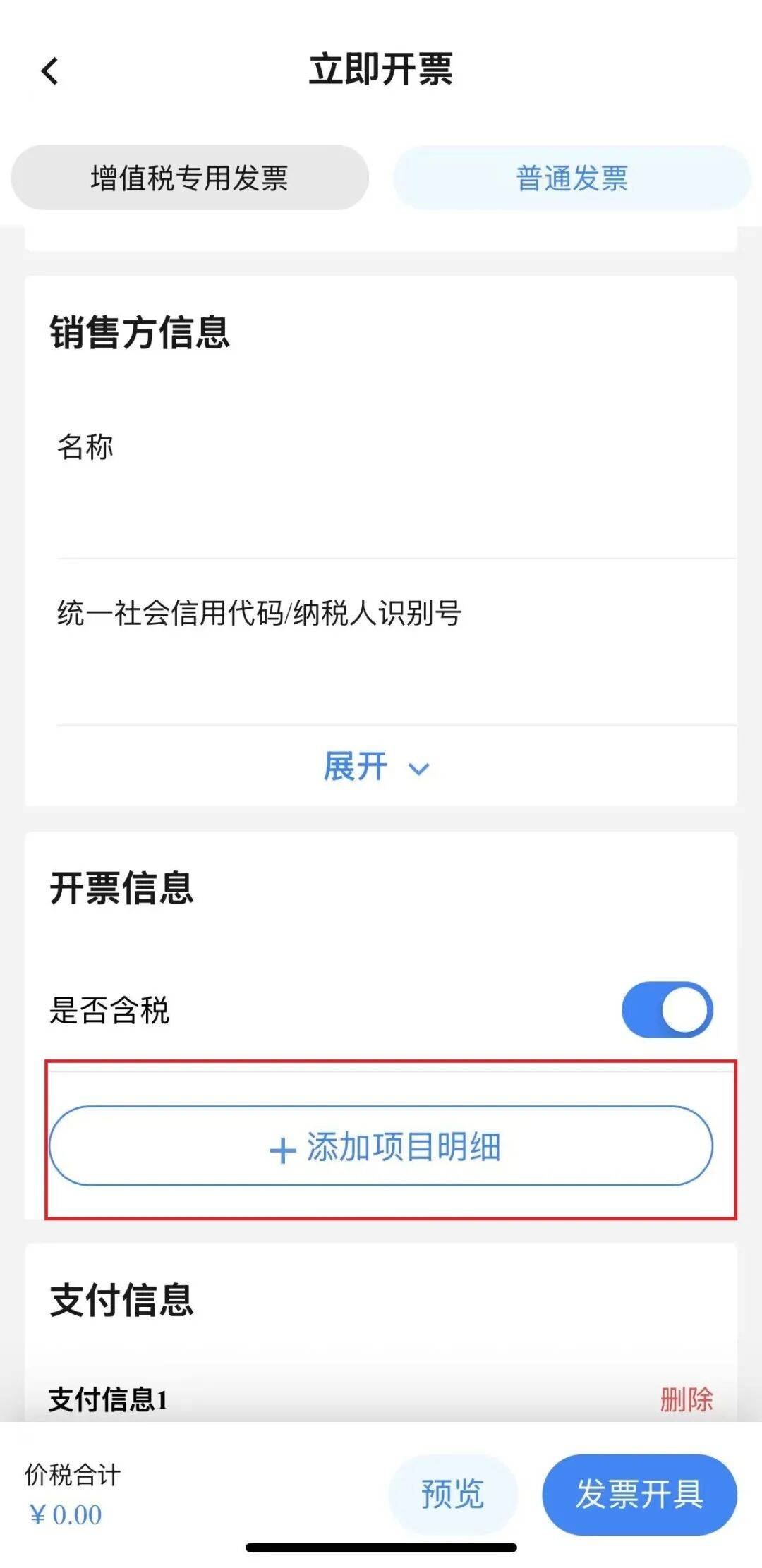 在开票页面,根据具体情况填写相关发票信息