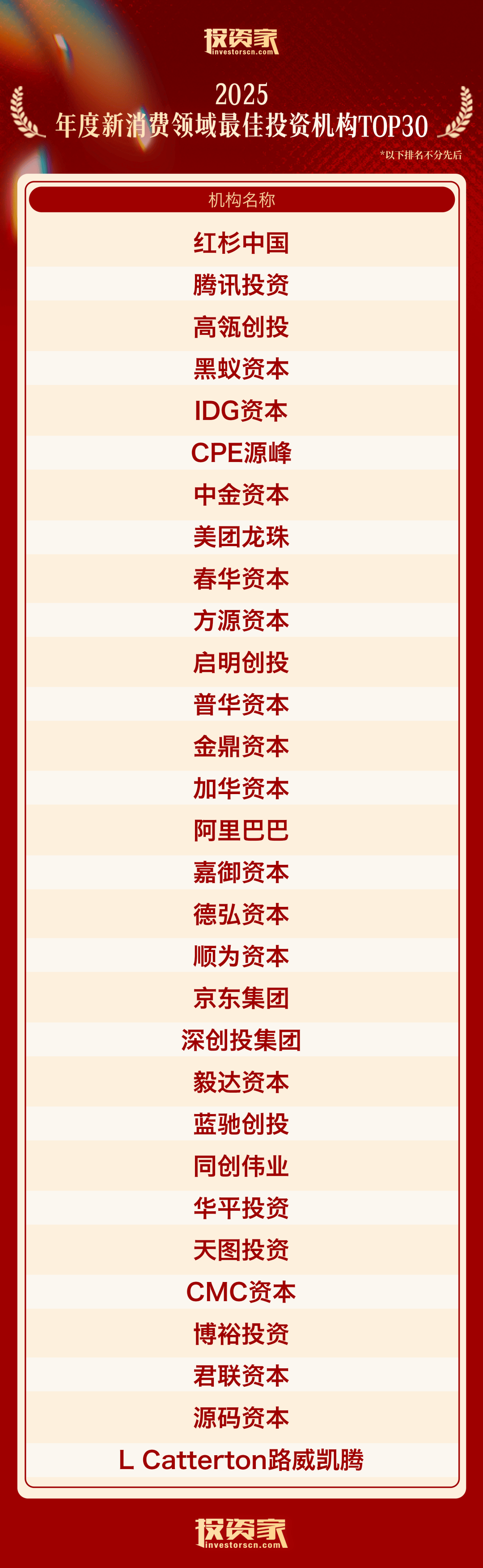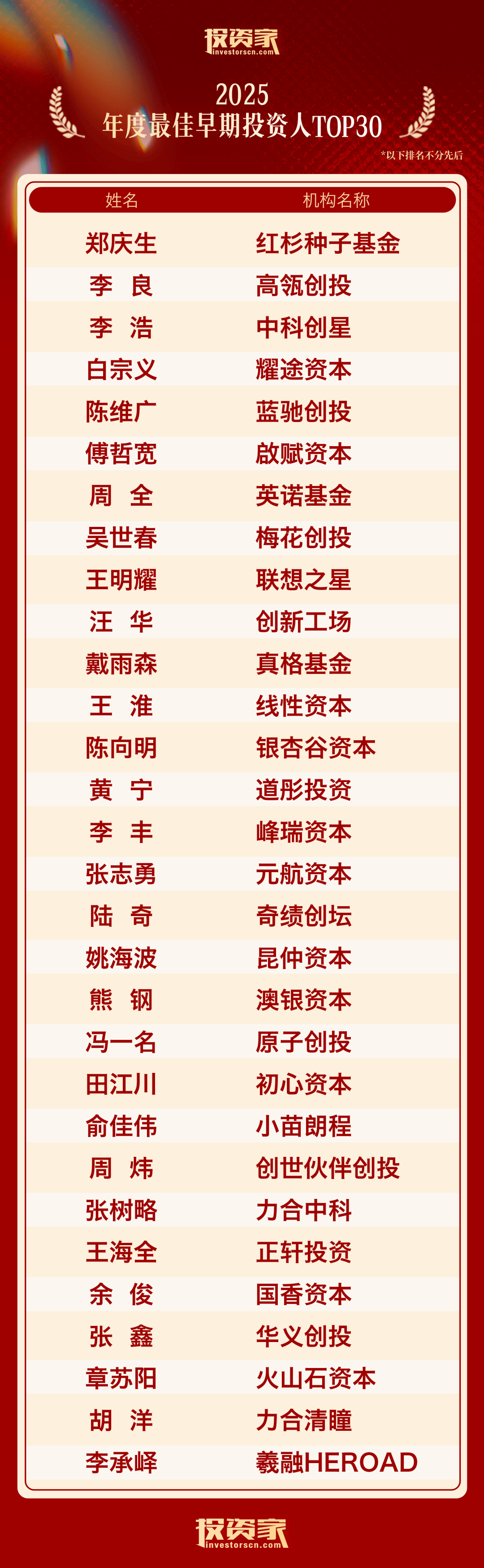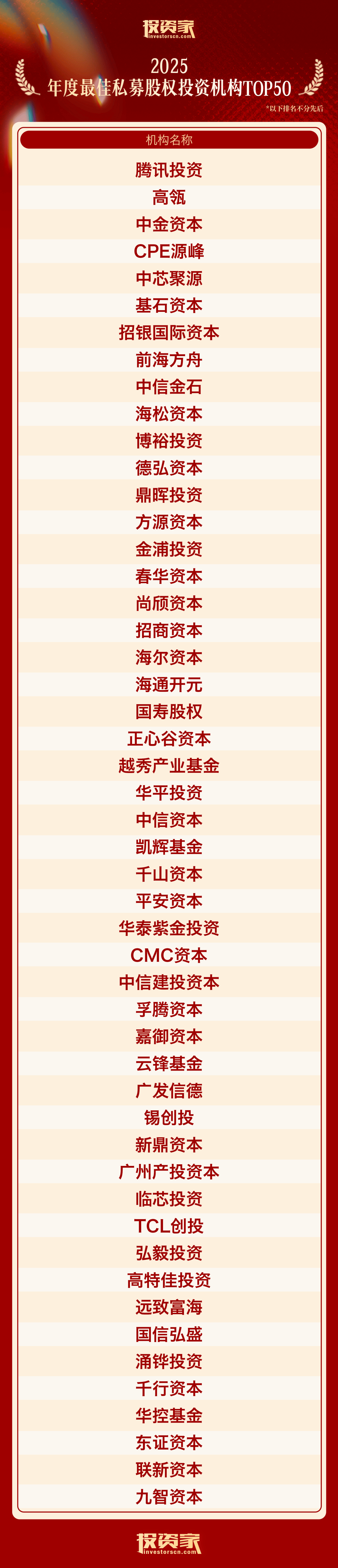 以下为“投资家网·2025股权投资年度榜单”: