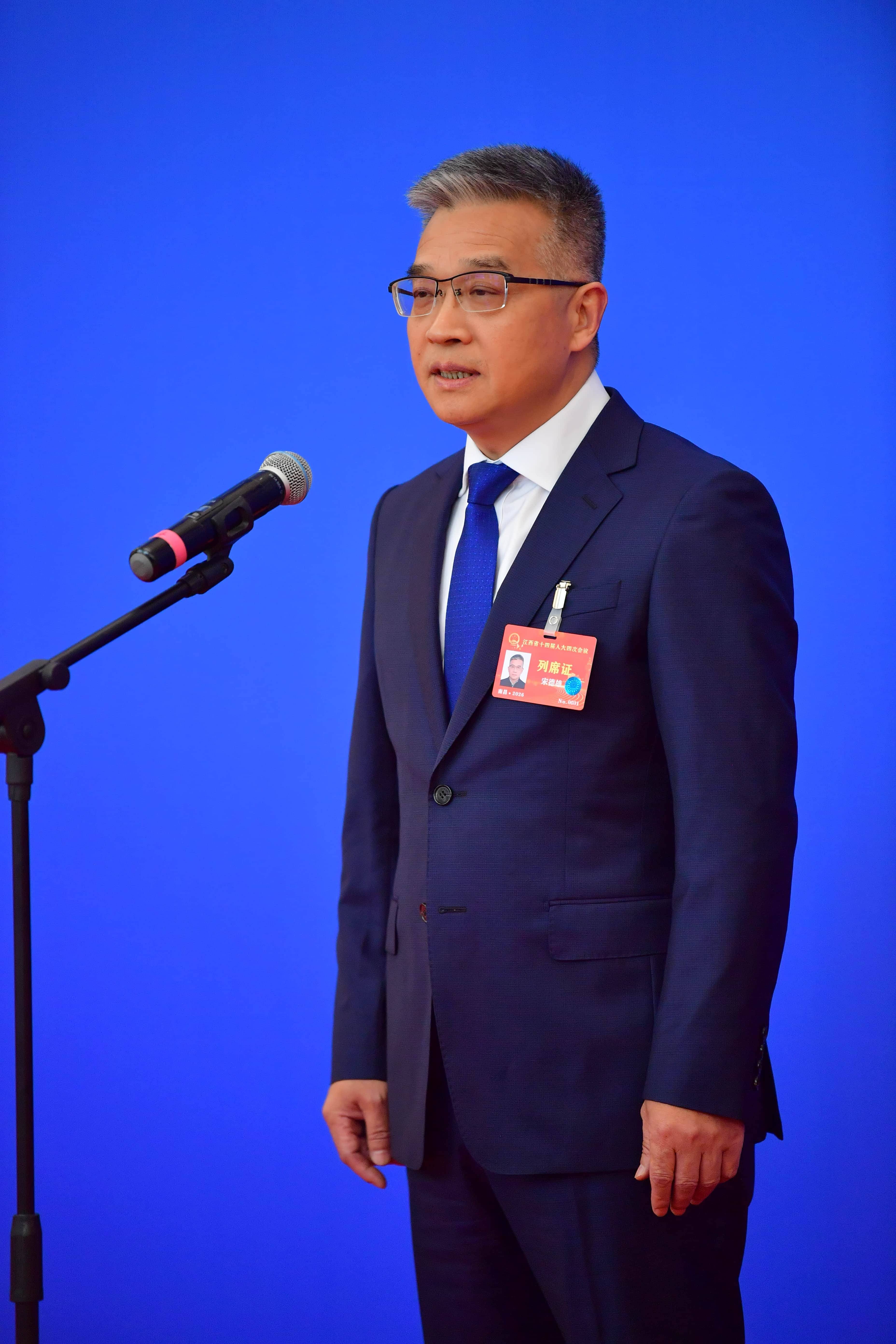 江西省科技厅党组书记、厅长宋德雄在“厅长通道”上回答记者提问。人民网记者 时雨摄