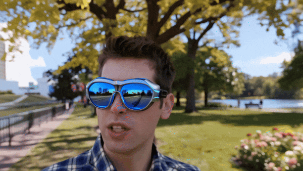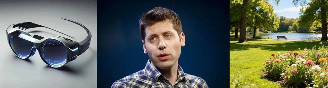 比如把奥特曼的照片丢给它,再来张酷炫智能眼镜和公园图片,然后下指令:男人戴着智能眼镜在公园里散步。