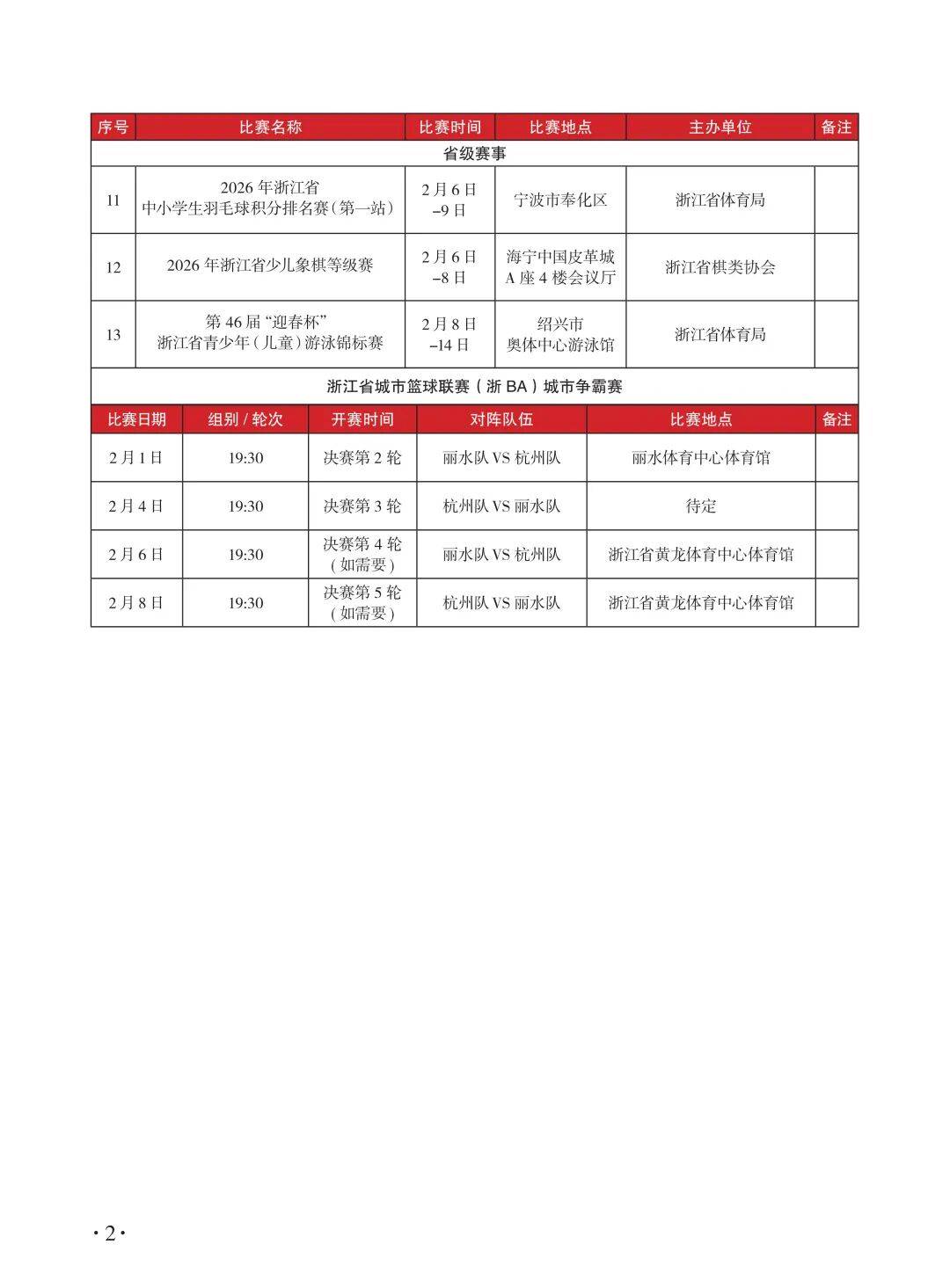 当月全省重大赛事名录已出炉