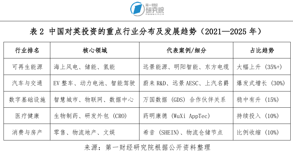 过去五年,中国对英投资经历了从以并购为主的资本驱动,向以绿地项目和本地化落地为核心的战略转型。虽然整体FDI存量有所回落,但投资项目展现出较强的韧性,在新能源与智能制造等关键领域稳步推进。2024—2025年,随着海上风电、电动车电池等重点项目加速落地,中国对英投资迎来结构性回暖窗口,投资质量显著提升。