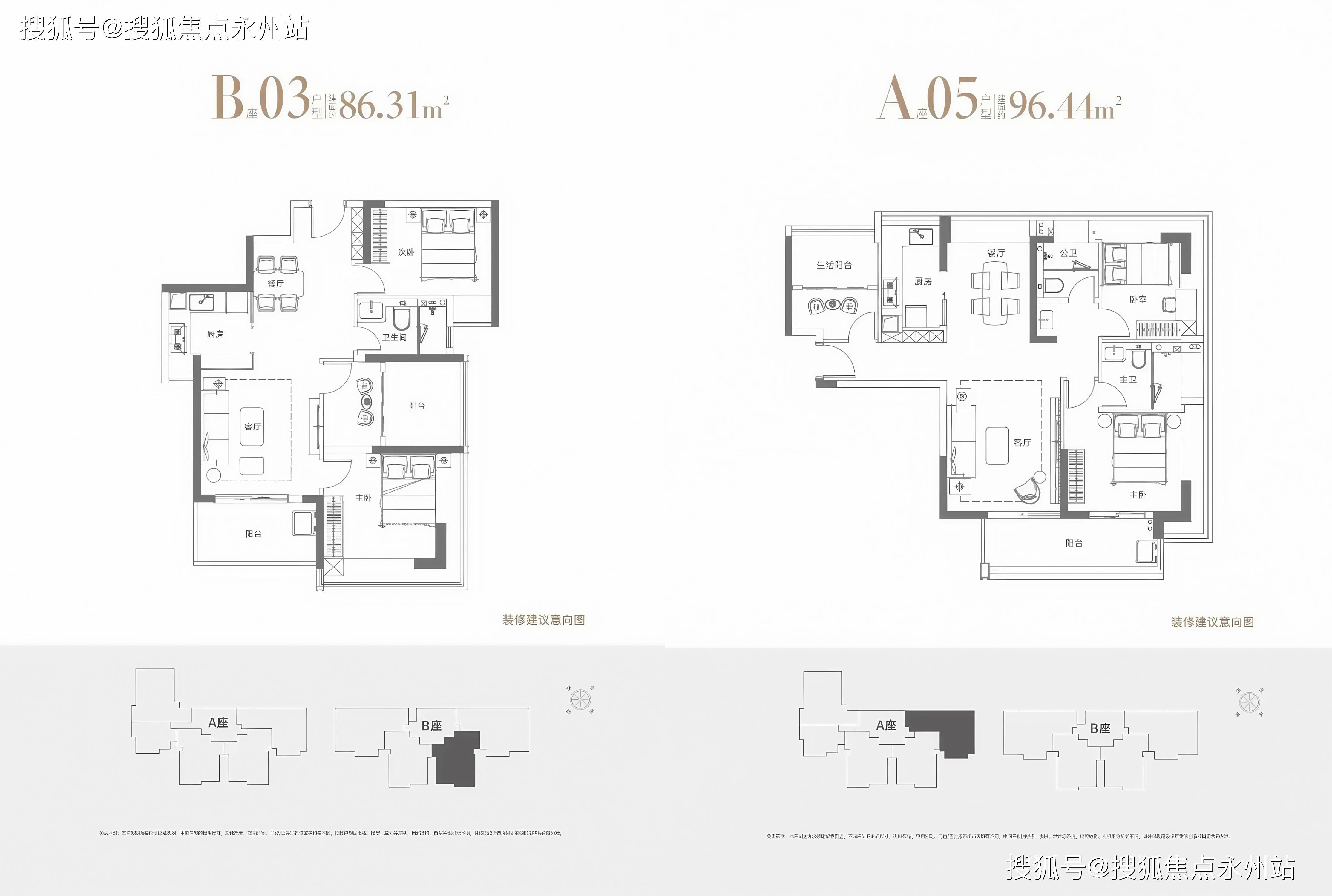 典型户型:86.31㎡三房(B座03户型),东南朝向,总价约612万-691万元。