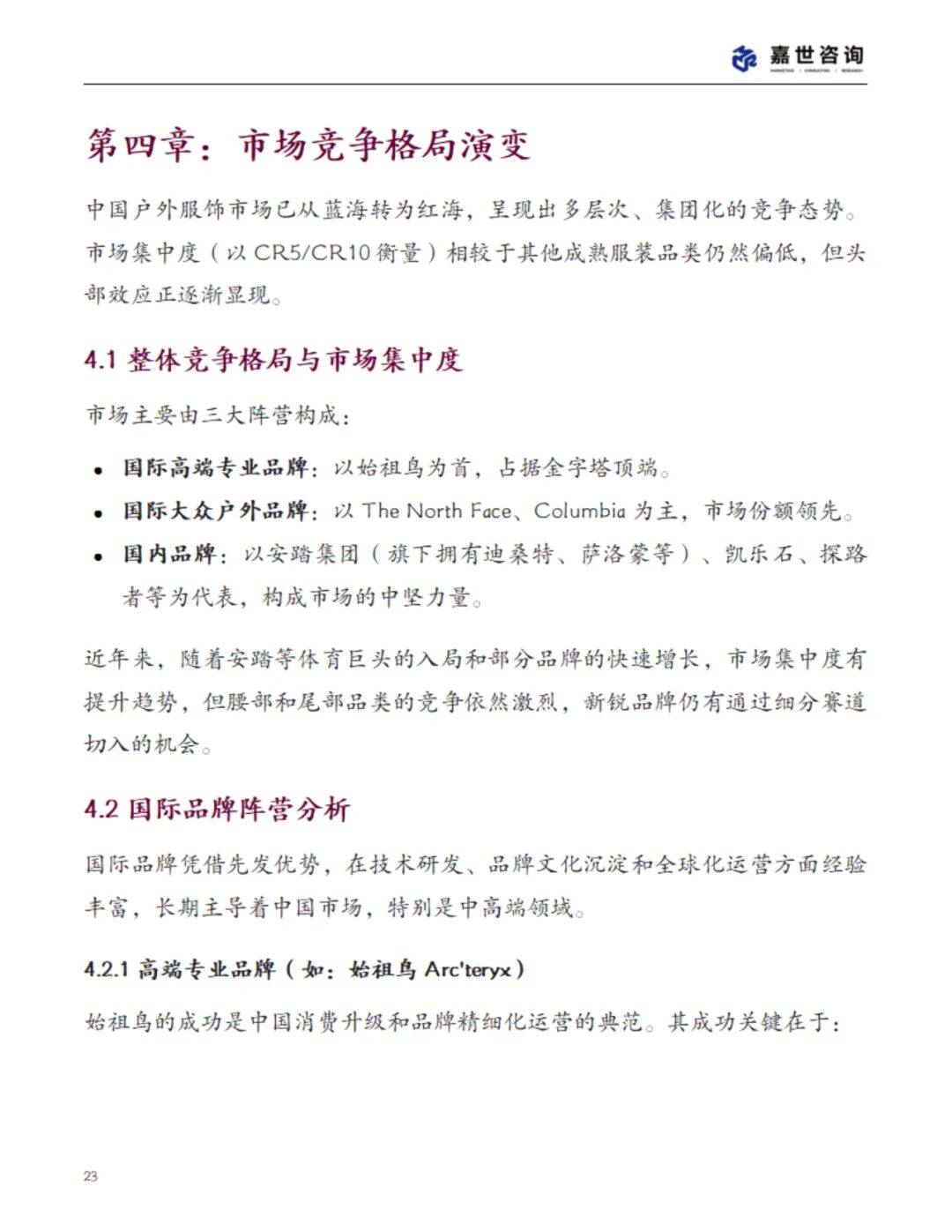 产业链分析显示,上游功能性面料技术由国际巨头主导,但国产替代进程已开启。中游品牌竞争呈现“哑铃型”结构,国际品牌占据高端市场,国内品牌深耕中端并积极向上突破。下游销售渠道线上线下深度融合,DTC模式成为重要战略方向。