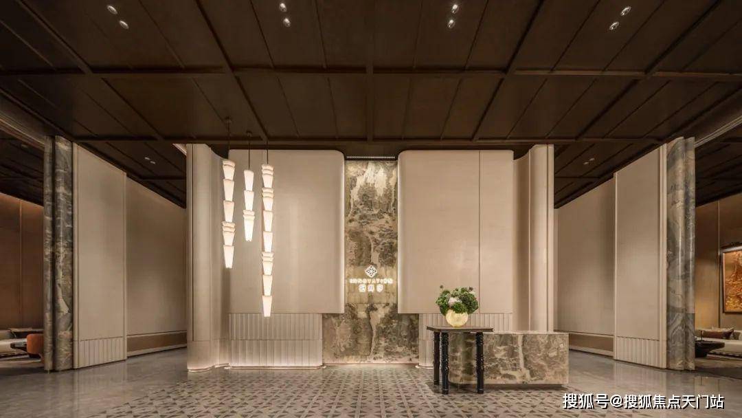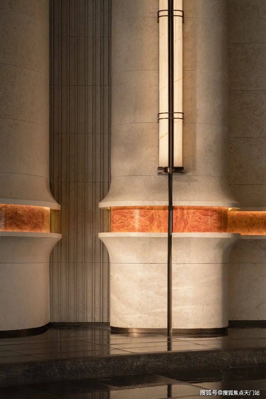 大量的艺术定制,让招商序化作耐人欣赏的艺廊。大门墙面橙皮红腰线定制,与沉香米黄石材形成鲜明撞色,仅这一项石材打磨,耗费就近百万;
