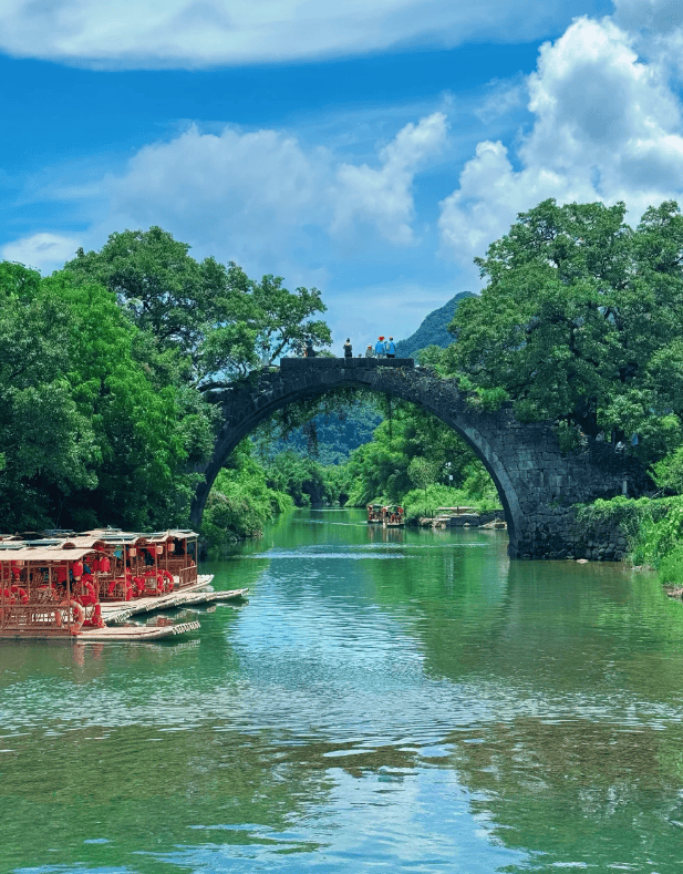 今天体验了最具代表性的【遇龙河多人竹筏漂流】。不同于漓江的机动船,这里的竹筏全靠船工手撑,河水清澈见底,两岸山峰田园如诗,竹筏缓缓而过,安静得能听到水流声和鸟鸣,真正体会到了“人在画中游”的宁静与诗意。随后【车观十里画廊】,峰林田园风光像一幅长卷轴。下午参观了【阳朔戏楼】,感受了地方文化。晚上当然属于【阳朔西街】,这里中西合璧,热闹非凡,找个小酒吧坐坐,听听音乐,感受阳朔夜的浪漫与活力。