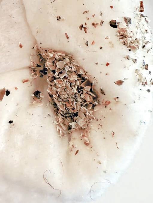 1月15日上午,记者在王女士家中看到客厅内摞着一箱箱纯净水,她说纯净水是买来专门做饭用的,“桶装水做饭用得快,成本高,但家里有孩子,不敢用自来水做饭,只敢用自来水洗菜。”进入厨房,她从水龙头上拆下事先绑好用于过滤的百洁布,白色的百洁布已变得发黄,纱线内隐藏着细小但明显的沙砾。记者捏起一撮,两个手指一捻,这些杂质直硌手。“这个过滤的布两三天就得拆掉换新的。”王女士将一块崭新的百洁布剪成小块,拿一块继续绑在水龙头上,她担心地对记者说,“这么明显的沙子,孩子要是随着粥饭直接吃了……真的要注意。”