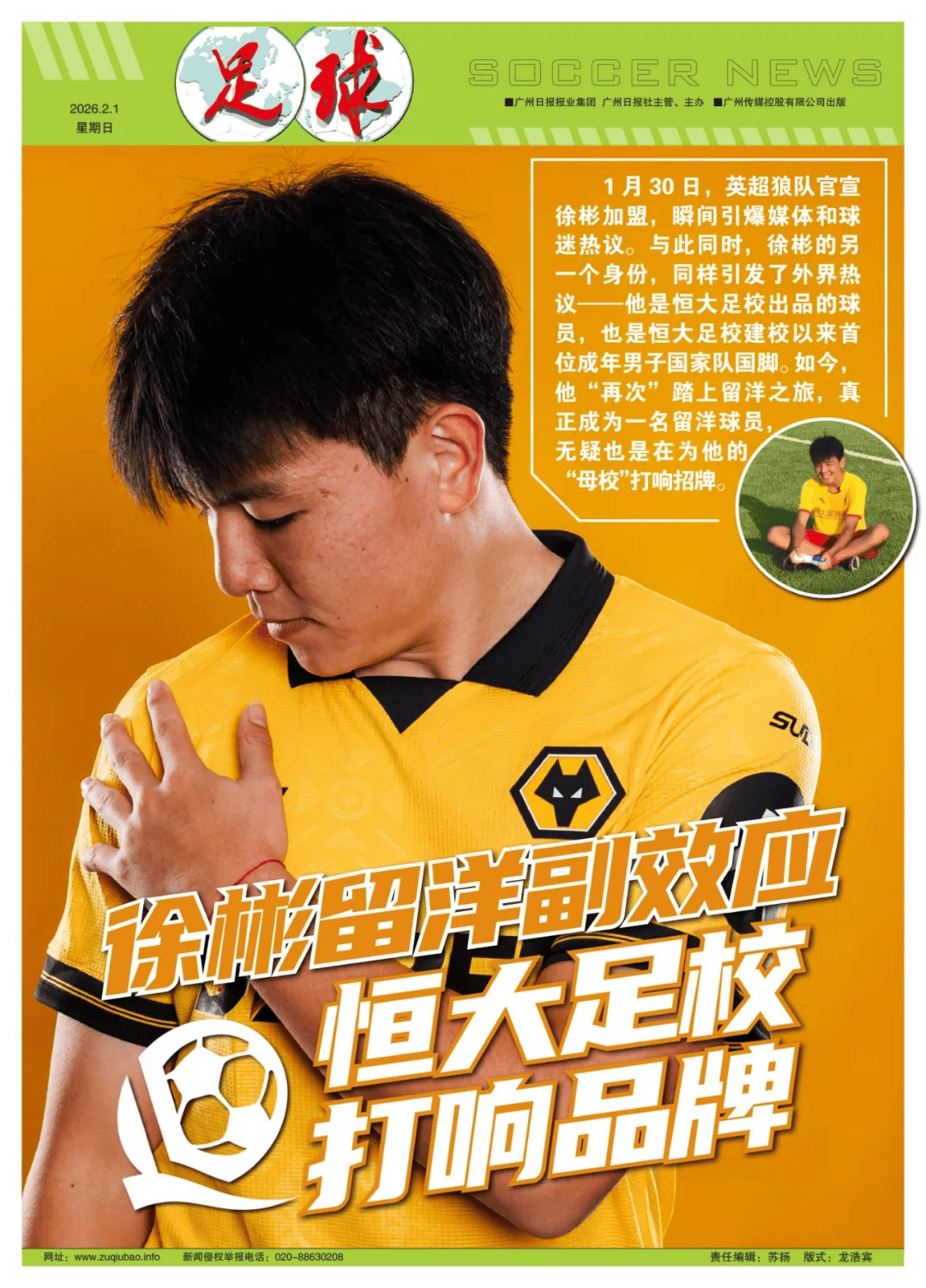 与此同时,徐彬的另一个身份,同样引发了外界热议——他是恒大足校出品的球员,也是恒大足校建校以来首位成年男子国家队国脚。如今,他“再次”踏上留洋之旅,真正成为一名留洋球员,无疑也是在为他的“母校”打响招牌。
