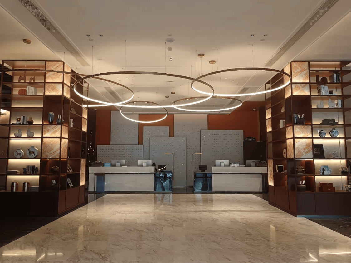 4.项目自带五星级希尔顿欢朋酒店、5400平米的高端宴会厅和空中花园餐厅等大型配套商业,全部营业中,为在售商铺提供强大的商业消费支撑。