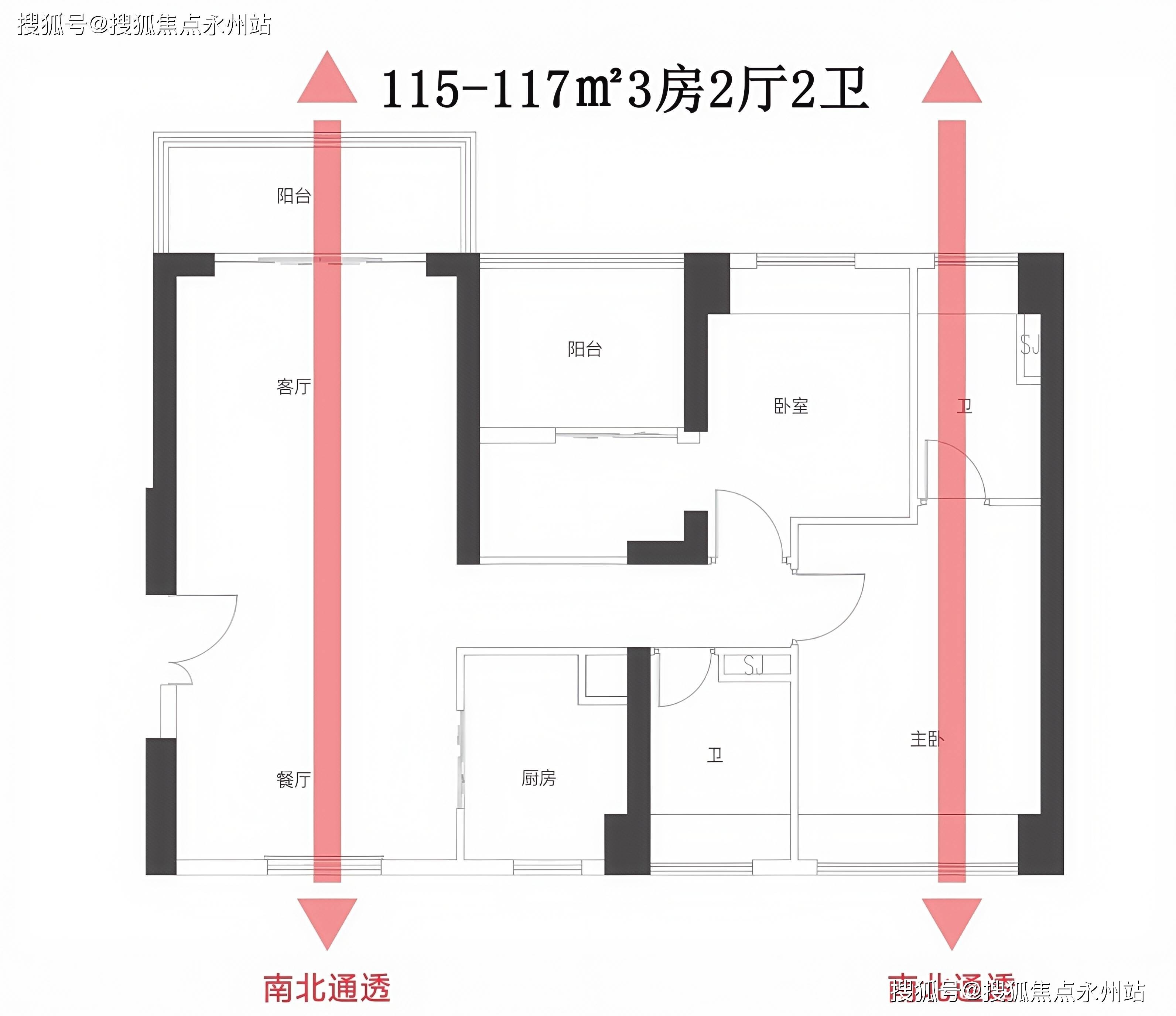 115-117㎡3房2厅2卫:位于4栋,南北通透,透气通风。客厅次卧全山景,景观视野好,安静舒适,私密性强。
