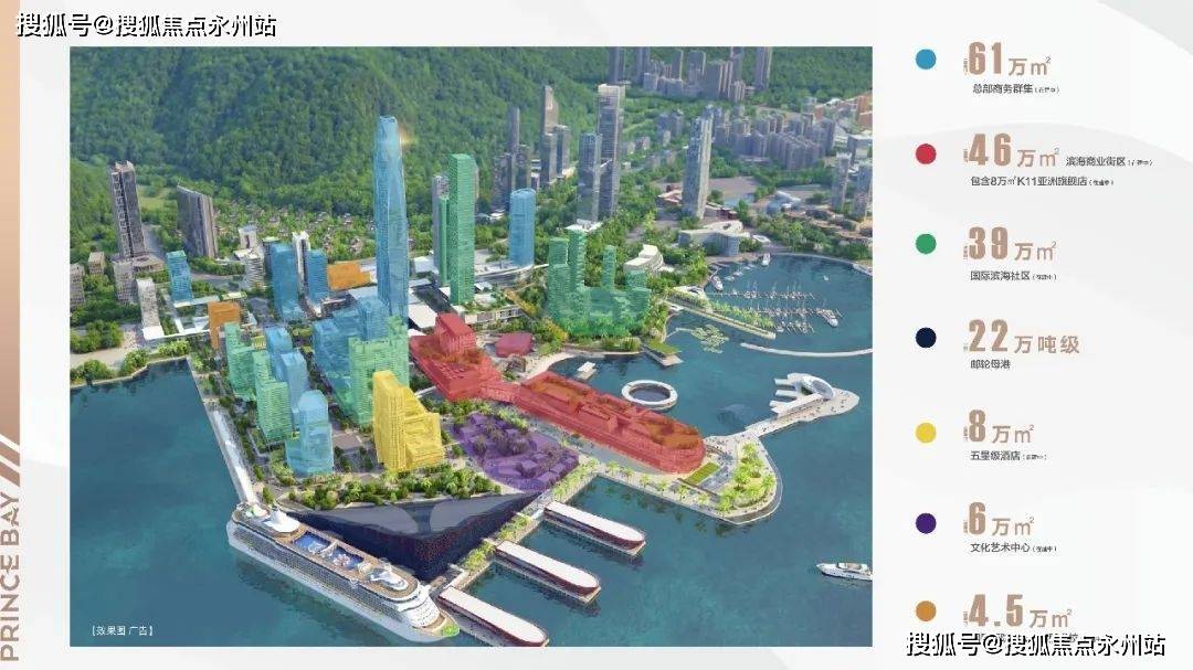 太子湾片区立意“一湾繁华,共享盛世”,以22万吨级邮轮母港为依托,构筑国际高端“居住坊”、“商业坊”、“邮轮坊”,配合超甲级写字楼、邮轮中心、国际学校、国际医院、文化艺术等全方位城市综合配套,成就高端元素集萃纷呈的“城中之城”