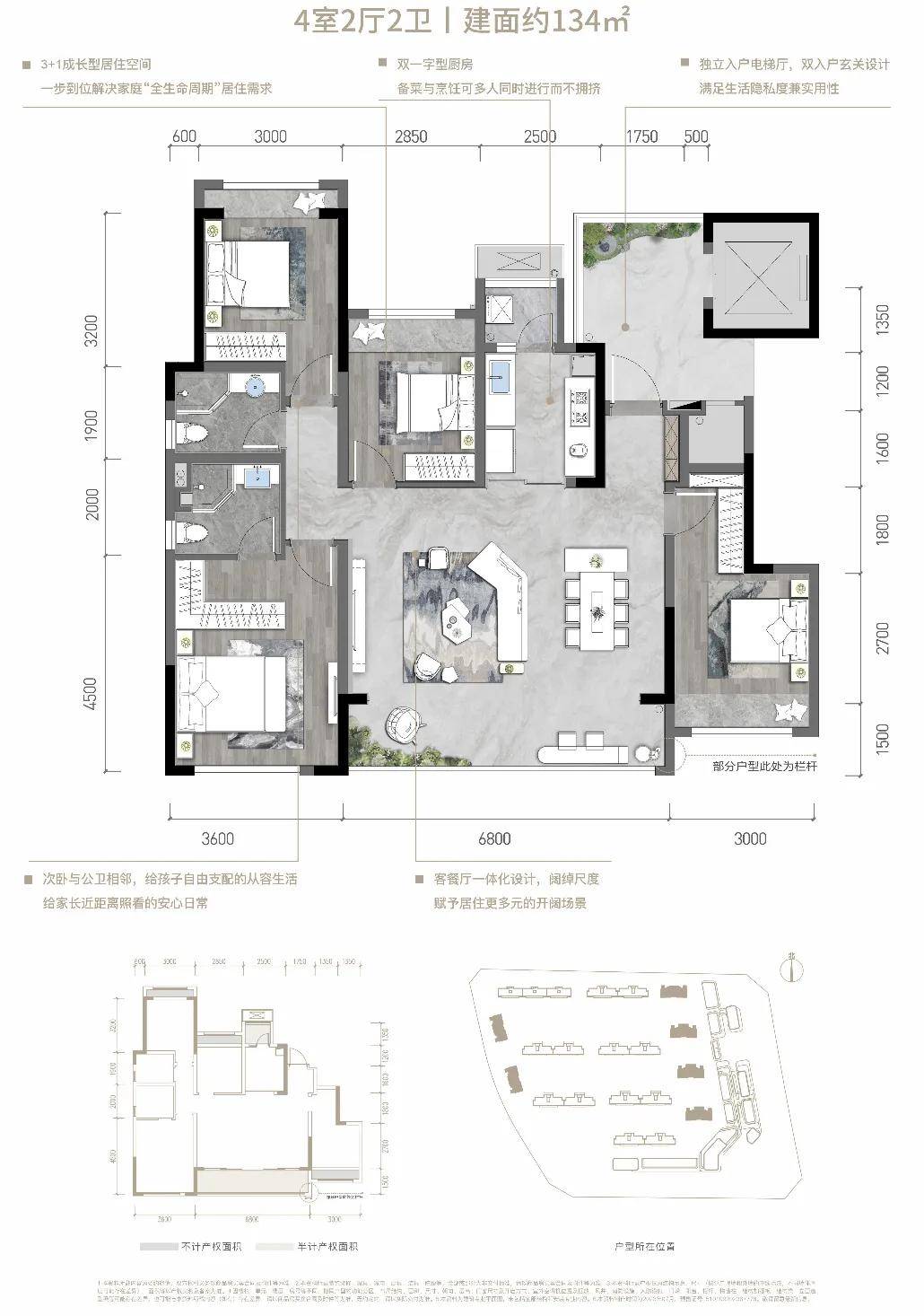 其中,住宅打造为13栋10-17F的纯板式小高层,商业半围合+住宅阵列式布局,不仅规避了商业或产生的嘈杂,同时形成南北通透、双面观景的楼栋格局,给到业主一个纯粹舒适的居住环境。