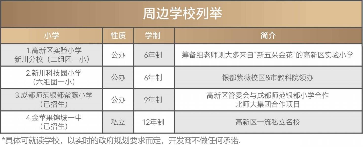鼎席学府:新川科技园小学、高新实验小学(新川分校)、成都师范银都紫藤小学(南北校区)等(具体可就读学校,以实时政府规划要求为准)