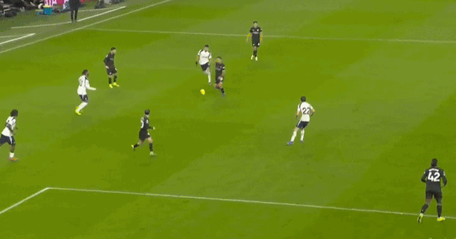第44分钟,托特纳姆热刺后防线送大礼,罗德里长传,B-席接球横敲,塞门约推射破门,曼城2-0领先!