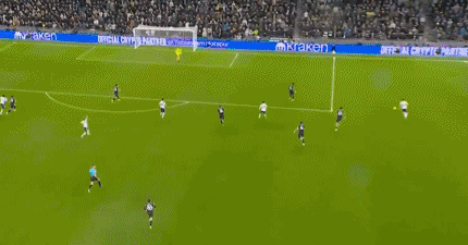 下半场,托特纳姆热刺强势反扑,第53分钟,索兰克乱战中打进一球,慢动作显示,索兰克射门时并没有踢到足球,而是踢在曼城后卫的脚腕上将球打进的。