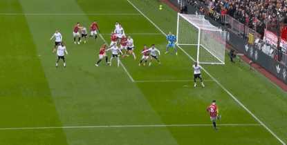第19分钟,曼联球员B费主罚右侧任意球传中,卡塞米罗头球破门,曼联1-0领先。