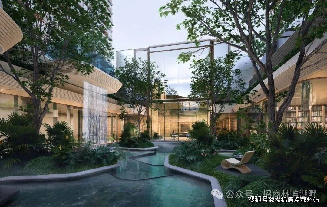 板块内领创“峡谷”意境的下沉式立体庭院,在约420平米的垂直面中,通过多层花池、叠水、软景塑造立体层次观感,遴选多种珍贵苗木,立体庭院贯通风雨连廊,给予五星级度假酒店般的空间体验。
