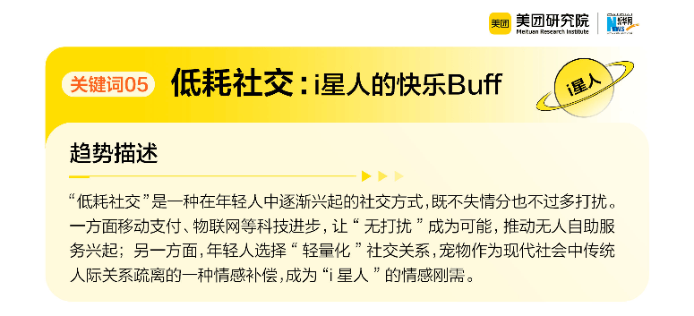 “低耗社交”针对的是现代人的“社交恐惧”,既渴望连接,又害怕过度打扰。无人自助KTV、自助棋牌室等业态的逆势增长(夜间订单占比40%),本质上是“不打扰的陪伴”——加班族或失眠者可以在无人环境中释放压力,无需应付社交客套;而宠物消费的量价齐升(诊疗消费增长230%、洗美消费增长43%)、搭子文化的流行,则是用“轻负担的亲密关系”填补人际疏离。心理学研究表明,单纯陪伴能降低23%的压力激素皮质醇,这种“我懂我在”的无声支持,比刻意维系的社交关系更具治愈力。