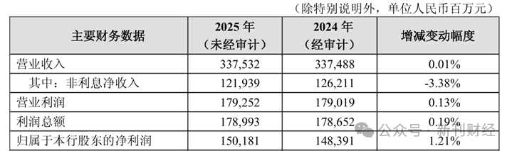 1月下旬,招商银行发布了2025年业绩快报。作为首批披露成绩的8家银行之一,招行在宏观经济低迷的背景下实现了“双增”——2025年营收3375.32亿元,同比微增 0.01%,归母净利润1501.81亿元,同比增长1.21%。然而,“零售之王”并非高枕无忧,非利息净收入下滑、净资产收益率回落、拨备覆盖率首次跌破400% 等信息也引发了市场关注和解读。