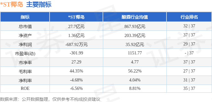 *ST椰岛2025年三季报显示,前三季度公司主营收入1.78亿元,同比上升8.75%;归母净利润-687.92万元,同比上升31.95%;扣非净利润-1599.37万元,同比上升14.77%;其中2025年第三季度,公司单季度主营收入8841.0万元,同比上升111.74%;单季度归母净利润888.58万元,同比上升160.29%;单季度扣非净利润-143.5万元,同比上升89.32%;负债率85.19%,投资收益-166.72万元,财务费用1201.51万元,毛利率44.35%。*ST椰岛(600238)主营业务:酒类产品的生产与销售、饮料产品的销售、贸易等。