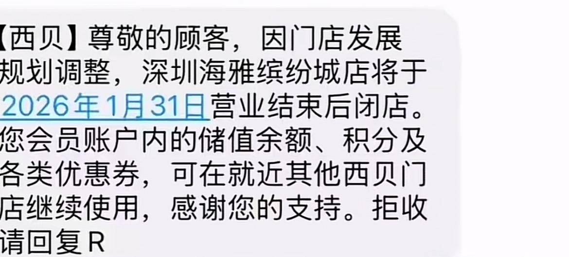 不少消费者反映,1月底他们曾收到西贝海雅缤纷城店发布的营业短信,称因门店发展规划,该店将于1月31日营业结束后闭店。红星新闻记者发现, 2月3日上午正常营业时间,西贝海雅缤纷城店已显示“歇业”。该店店长微信回复称,后续将由西贝深圳宝安大悦城店接替工作。