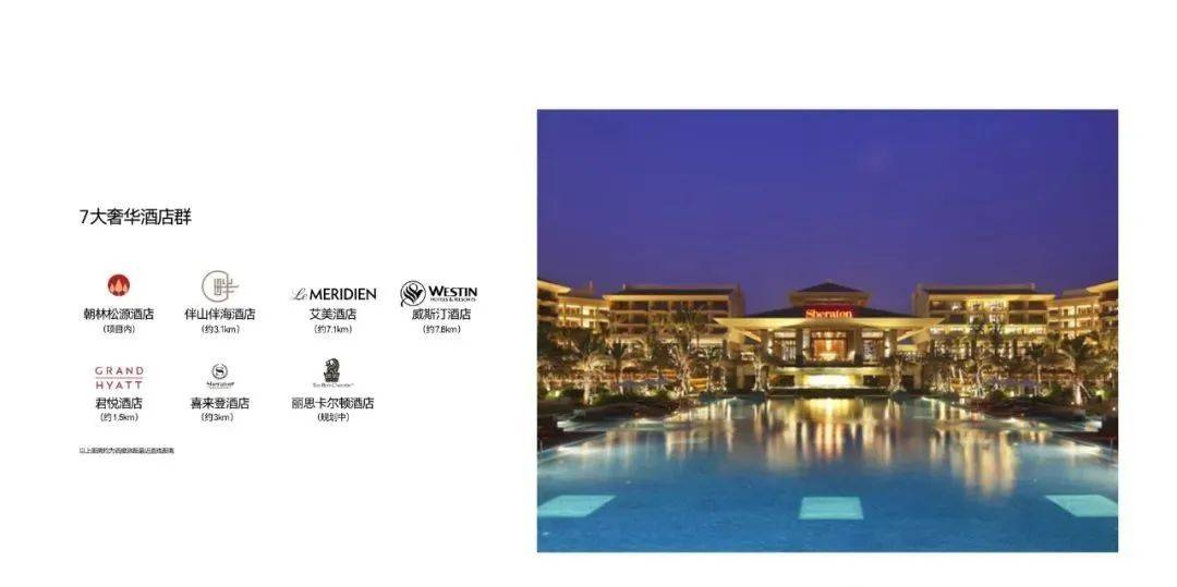 7座时尚奢华酒店 —— 朝林松源、君悦、伴山伴海、喜来登、艾美、威斯汀、丽思卡尔顿(建设中)