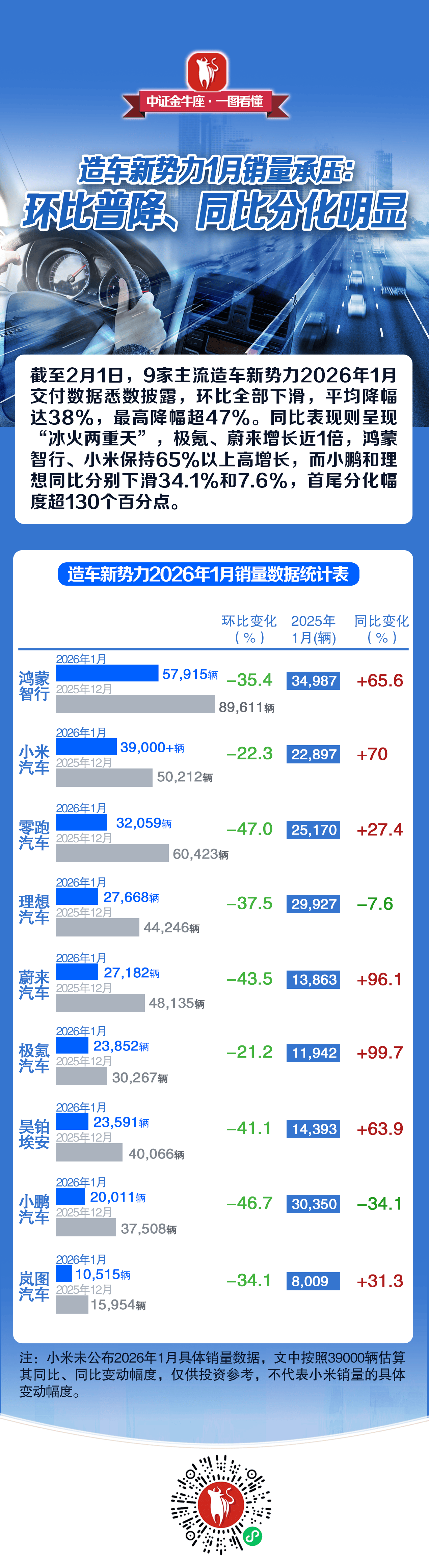 【一图看懂】环比普降,同比分化明显!造车新势力1月销量承压