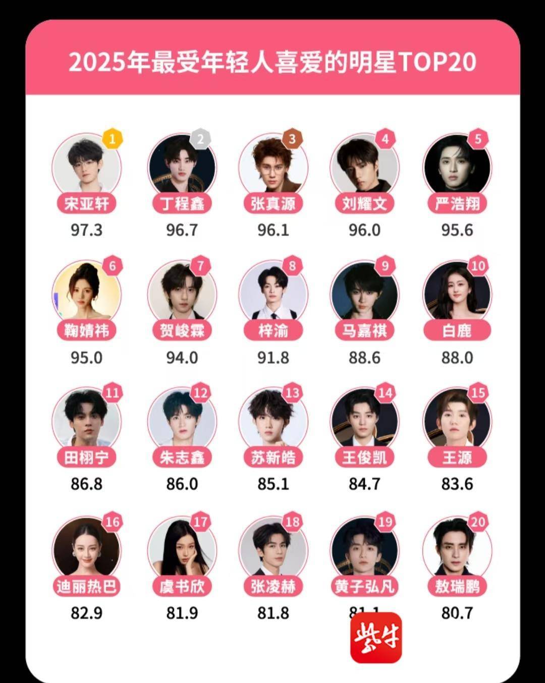 2月3日,微博发布了《2025微博娱乐白皮书》,显示2025年的明星头部版图呈现出“基石稳固、新锐突进”的双重格局,年轻一代审美与主流大盘呈现显著分流。年轻群体的选择逻辑更偏向"养成陪伴"与"同频共振",在2025年最受年轻人喜爱的明星TOP20中,TF家族时代少年团成员宋亚轩获得第一名,前五名均为TF家族时代少年团成员。在TOP20名单中,有11位明星都来自TF家族。白皮书认为,在年轻一代眼中,能够共同成长的情感羁绊与情绪价值,远比单纯的国名知名度更具吸引力。