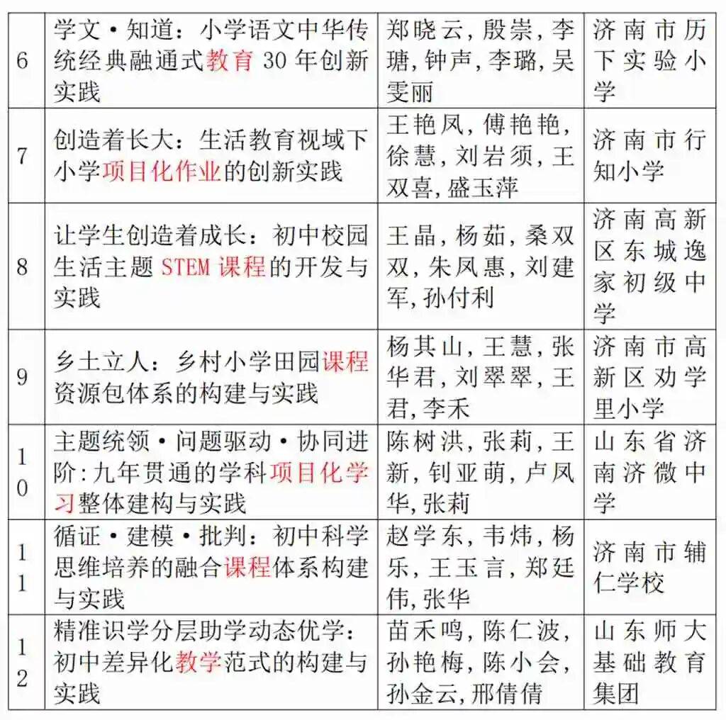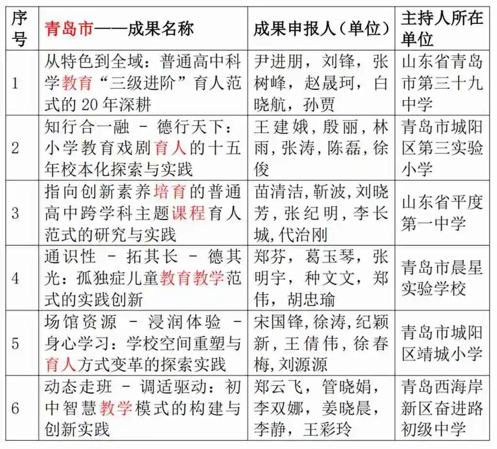 山东省2025基础教育教学成果特等奖获奖项目(济南市、青岛市、潍坊市、省直属单位)名单如下: