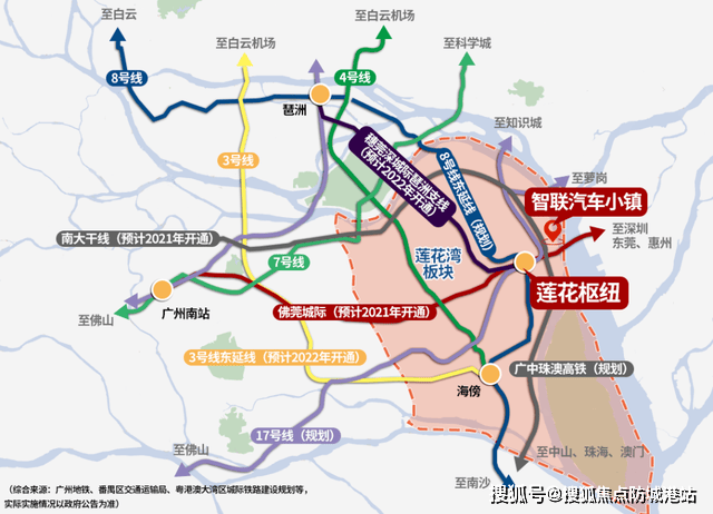 智联汽车小镇位于番禺莲花湾片区,该区域被纳入广州“东部智造走廊”战略节点,周边聚集广汽埃安、合创汽车等新能源整车制造基地,形成一定产业人口基础。项目本身即由广汽牵头参与开发,体现出“以产促居、以居养产”的逻辑。尽管当前区域城市界面仍处于开发初期,大型商业综合体、三甲医院等高能级配套尚缺,但依托南大干线与未来地铁8号线东延段,其与万博、大学城、广州南站等成熟板块的联动性正在增强。对于看重长期区域成长性、且能接受现阶段配套过渡期的购房者而言,该项目提供了一个低密度、大社区、强企业背景的居住选项。