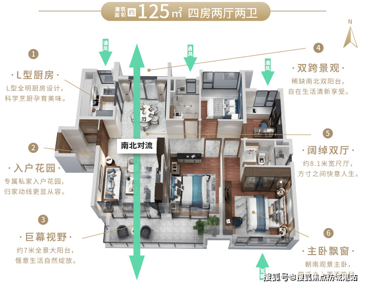 户型设计:95㎡三房实现全南向,125㎡四房强调通透性
