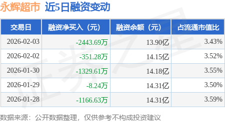 证券之星消息,2月3日,永辉超市(601933)融资买入3625.85万元,融资偿还6069.54万元,融资净卖出2443.69万元,融资余额13.9亿元。