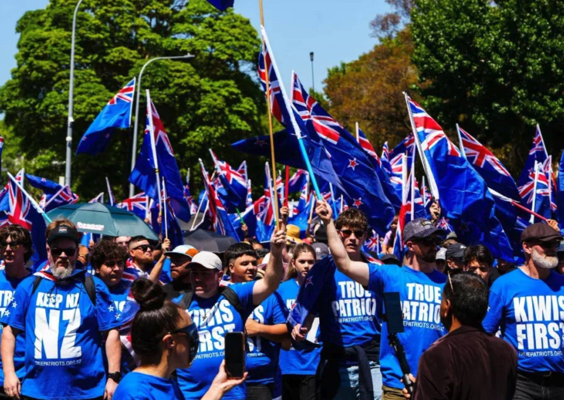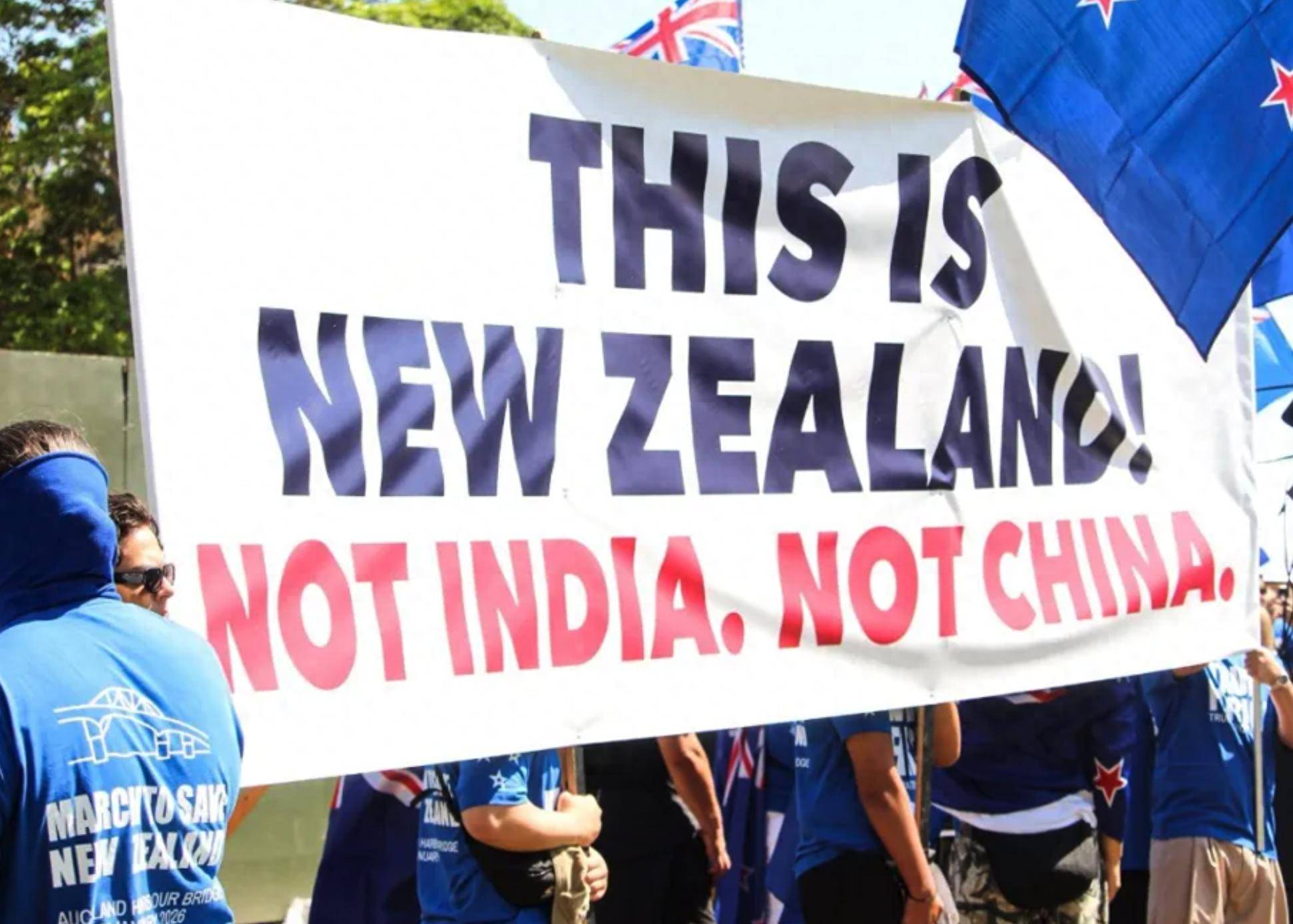 2026年1月31日,正是一个阳光明媚的周六,南半球的空气温暖宜人。然而,在奥克兰的维多利亚公园,空气中却弥漫着一种令人不适的陈腐气息,像是残留的历史遗臭。一群身着蓝色T恤、挥舞着新西兰国旗的人群,宛如从上个世纪的旧时光中穿越而来,举起了一块令现代社会无法理解的标语牌:这里是新西兰!不是印度!不是中国!