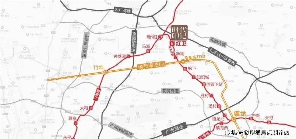 交通配套项目具有便捷的交通优势,出门即是红卫地铁站,14 号支线一站到白云新和,快线 2 站到嘉禾望岗,21 号线可畅达天河员村。此外,还有穗莞深-新白广城轨,北接白云机场,南联深圳机场。未来还将打造集高铁、地铁、城轨为一体的超大型 TOD,通过高速地铁快速通达广州东站、南沙港、白云机场。