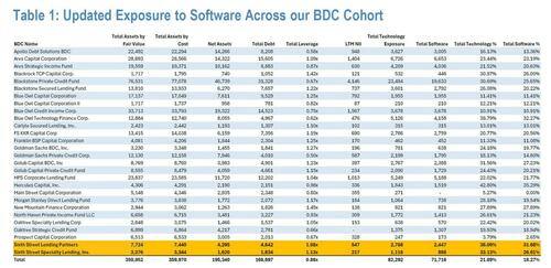 BDC是私募信贷市场重要组成部分的商业发展公司(Business Development Company,简称BDC),专门为中小型企业(通常是私有企业)提供资金,手里持有大量软件公司的债务(约占其投资组合的 16%)。而随着软件行业面临前所未有的抛售潮,BDC正面临严峻的资产减值风险。