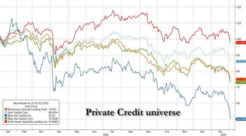 其他值得关注的大额贷款包括 Medallia(18亿美元贷款,市场标记在80左右,但 FSK 将其标记在90以上)和 Auctane(13亿美元贷款)。Cloudera 的贷款价格近期也下跌了约13个点,尽管其在 NMFC 和 BCRED 的投资组合中占比相对较小。这些价格脱锚现象表明,BDC 的资产减值压力可能才刚刚开始。