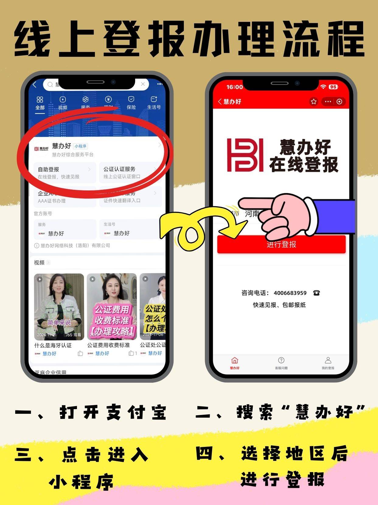 如果只能通过报纸登报,那也有快捷的办法,直接用“慧办好”足不出户轻松搞定。