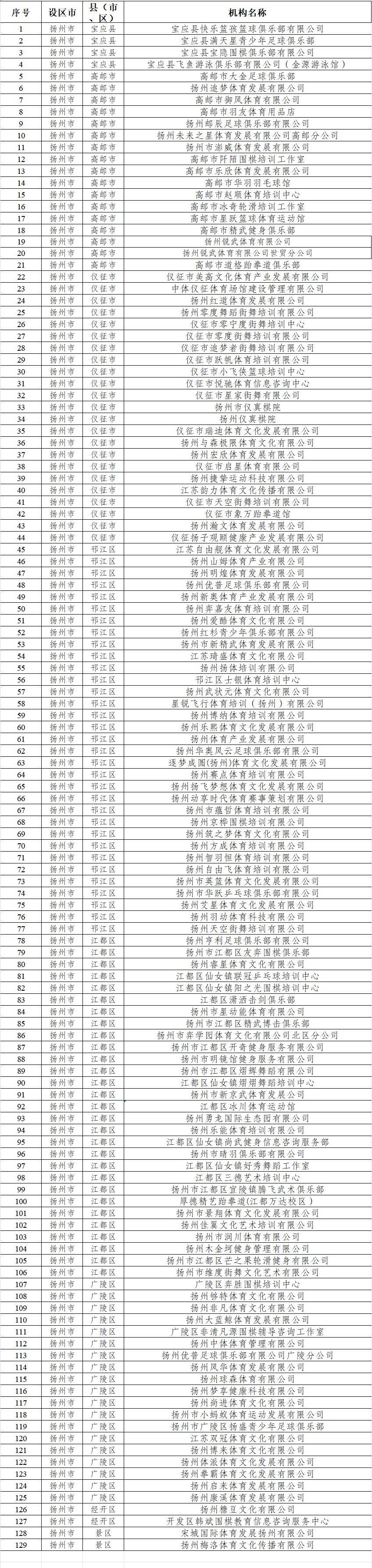 扬州市校外教育培训机构“白名单”(第七期)(体育类)