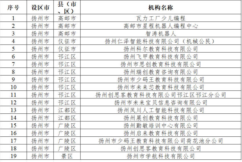 扬州市校外教育培训机构“白名单”(第七期)(科技类)